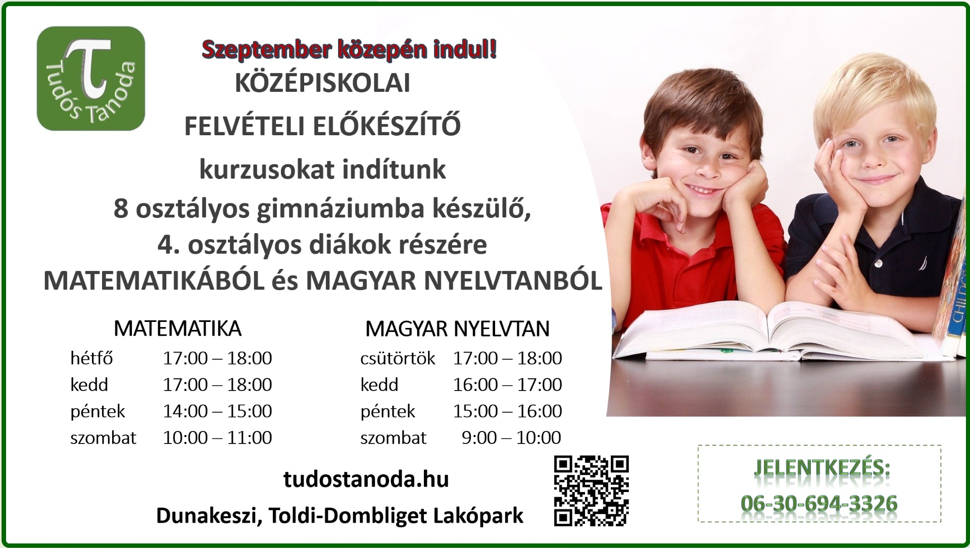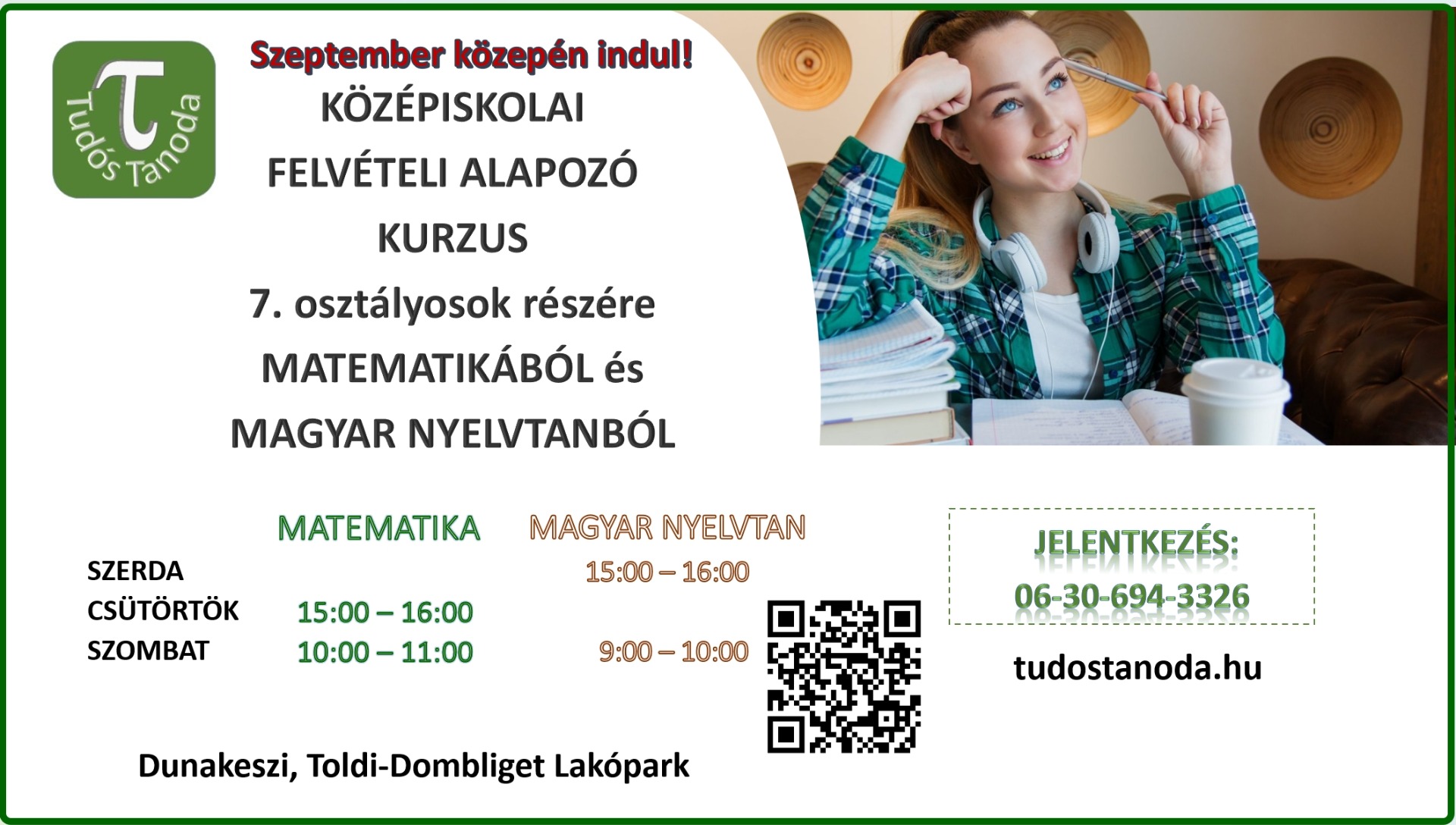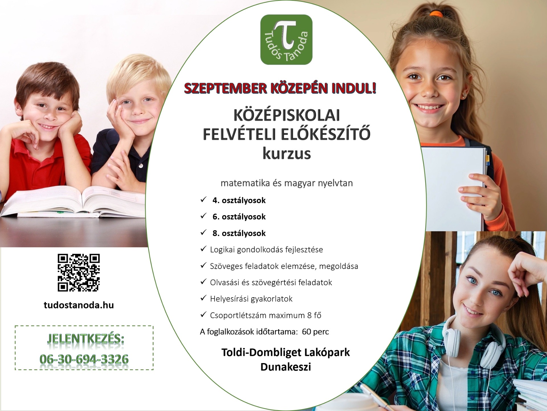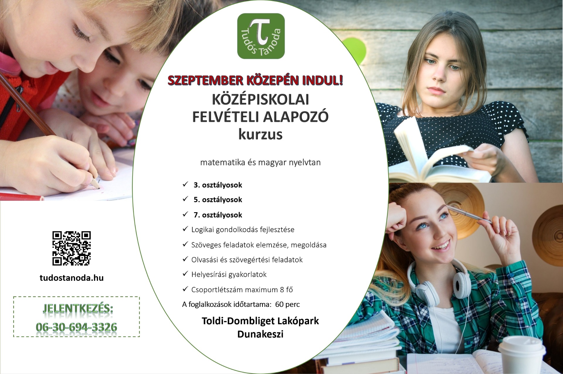szeptemberben indul a KÖZÉPISKOLAI FELVÉTELI ALAPOZÓ KURZUS.
