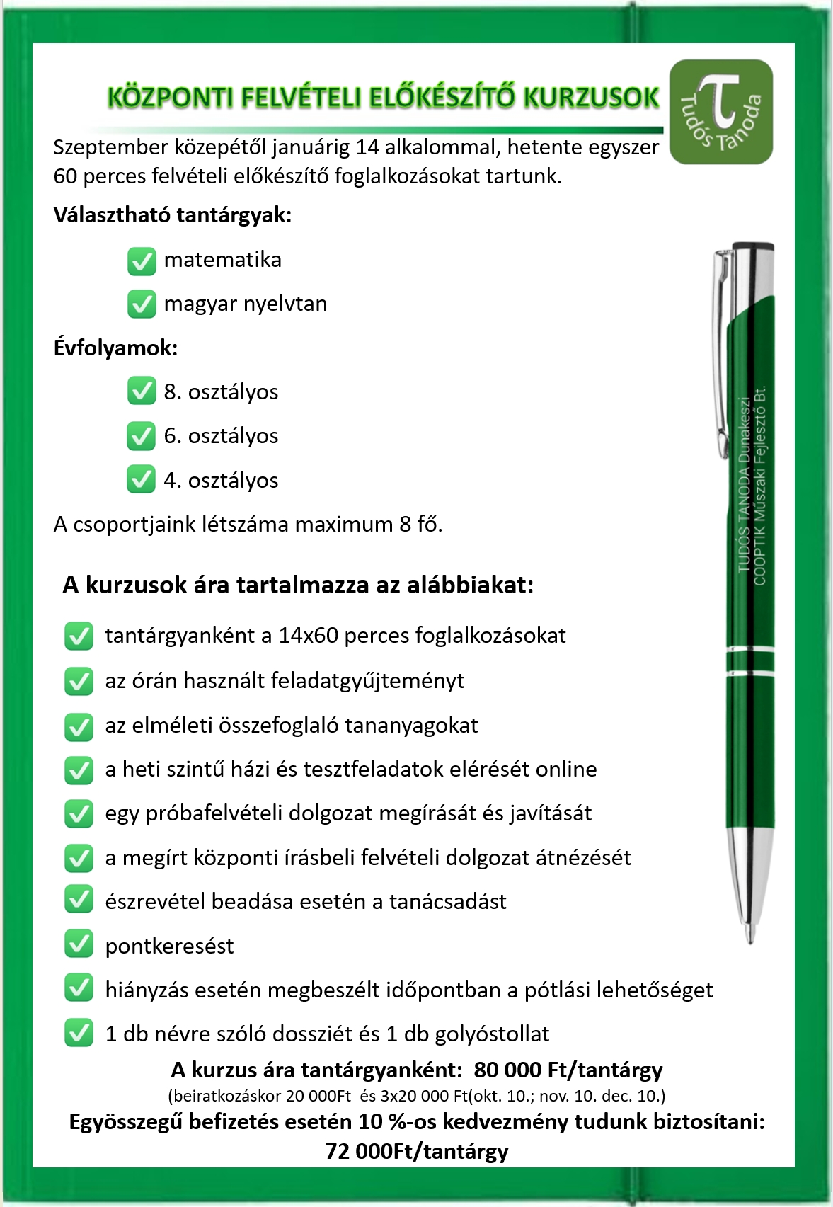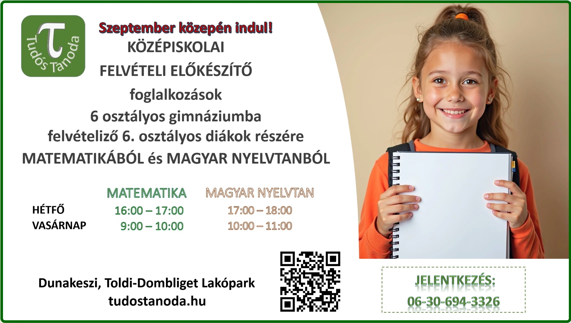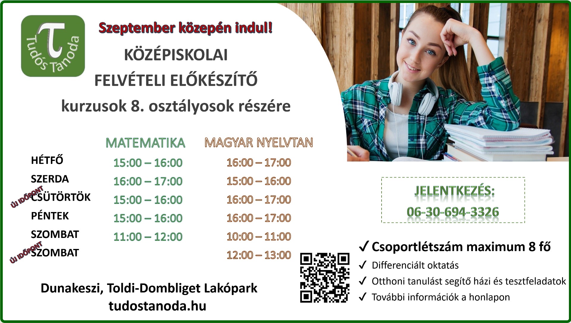 A 2025 SZEPTEMBERÉBEN INDULÓ KÖZÉPISKOLAI FELVÉTELI ELŐKÉSZÍTŐ KURZUSOK ÓRARENDJE MÁR MEGTEKINTHETŐ.