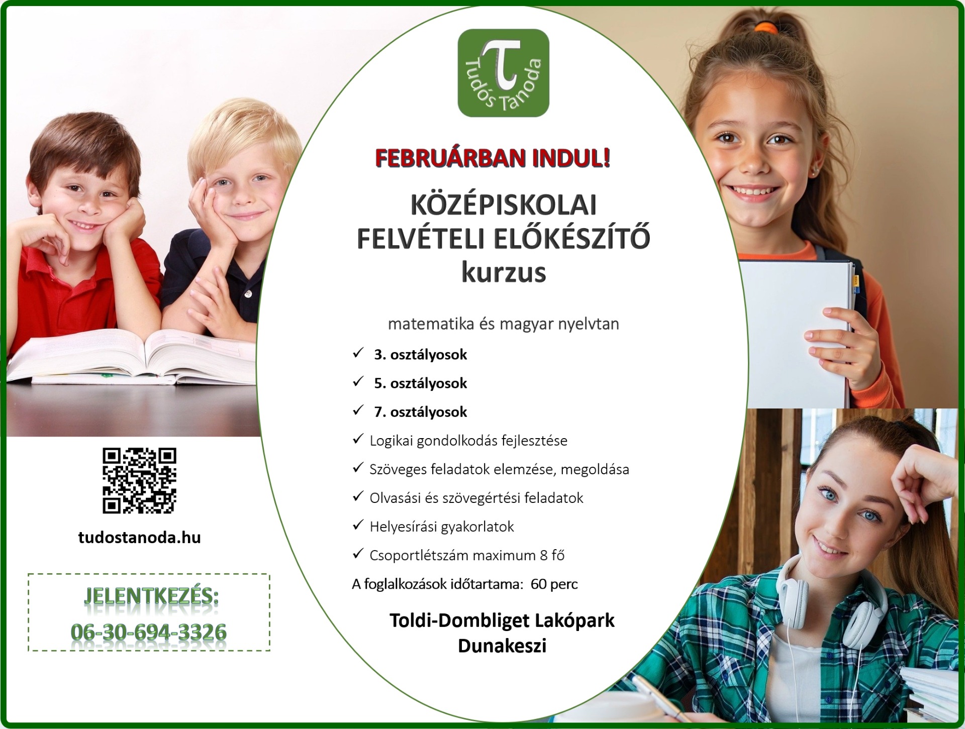 A 2026 FEBRUÁRJÁBAN INDULÓ KÖZÉPISKOLAI FELVÉTELI ELŐKÉSZÍTŐ KURZUSOK ÓRARENDJE HAMAROSAN ELÉRHETŐ HONLAPUNKON!