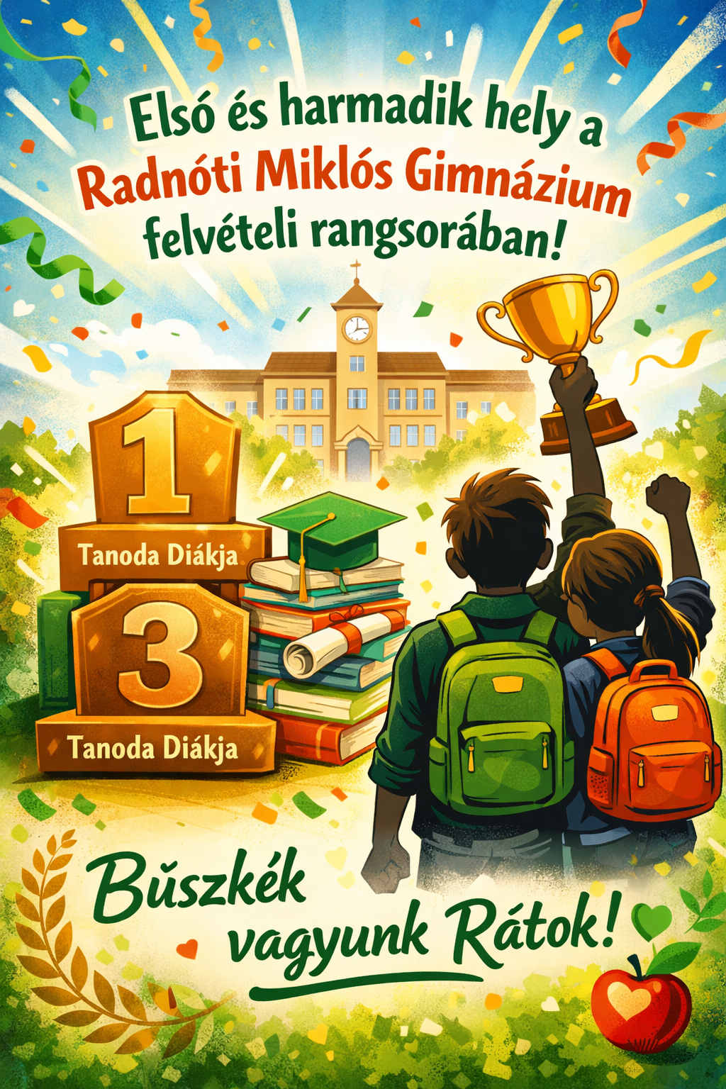 A Radnóti Miklós Gimnázium 6 osztályos felvételi ideiglenes rangsorában az 1. és a 3. helyen is Tanodánk diákja áll!